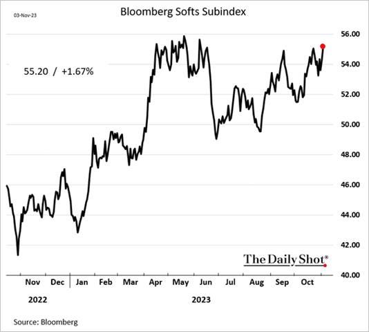 Tail of two cities in agg world, with softs hitting highs and grains oversupplied