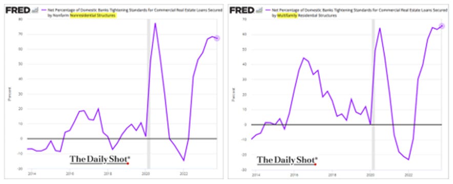 Capital Risk Transfer: U.S. Bank are selling complex debt instruments to private-fund managers as a way to reduce regulatory capital charges on the loans they make. These so-called synthetic risk transfers are expensive for banks but less costly than taking the full capital charges on the underlying assets. They are lucrative for investors, who can typically get returns of around 15% or more. Regulators have been raising capital requirements for years, and they proposed even tougher measures after the banking panic that began in March. Higher interest rates are eroding the value of banks’ investment portfolios, which can also eat into regulatory capital levels. In most of these risk transfers, investors pay cash for credit-linked notes or credit derivatives issued by the banks. The notes and derivatives amount to roughly 10% of the loan portfolios being de-risked. Investors collect interest in exchange for shouldering losses if borrowers of up to about 10% of the pooled loans default. - Big Banks Cook Up New Way to Unload Risk – WSJ