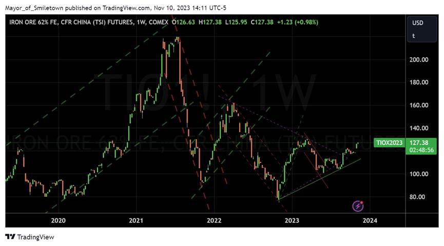 Chinese Iron Ore Future Price: Iron Ore futures are higher on the day and the week.