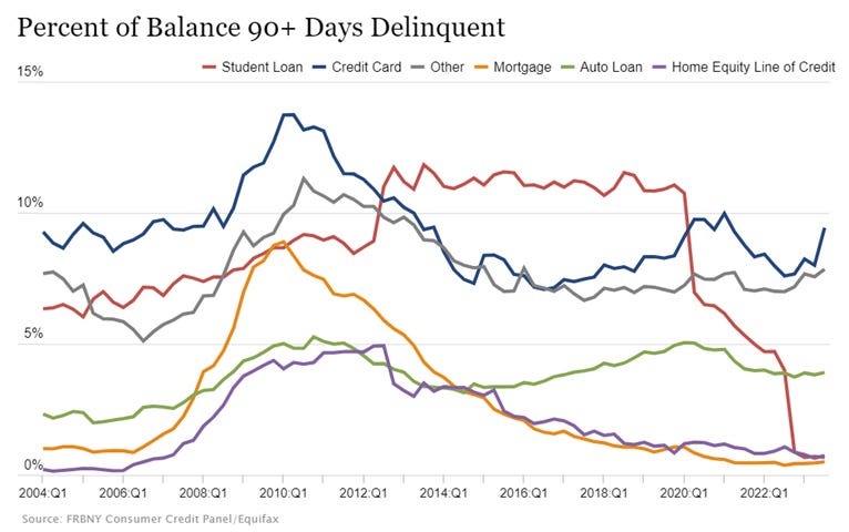 *Credit card delinquencies have picked up, while other delinquency rates are more stable