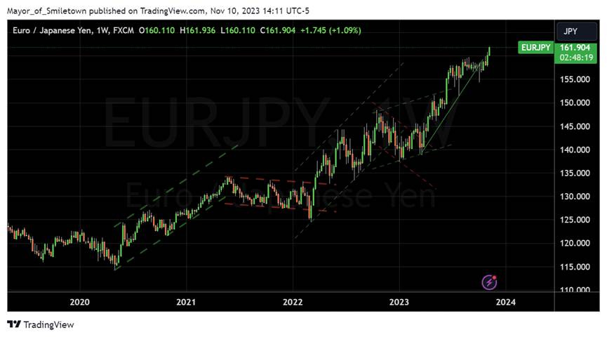 EUR/JPY FX Cross: The Euro is stronger on the day and the week.