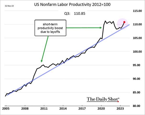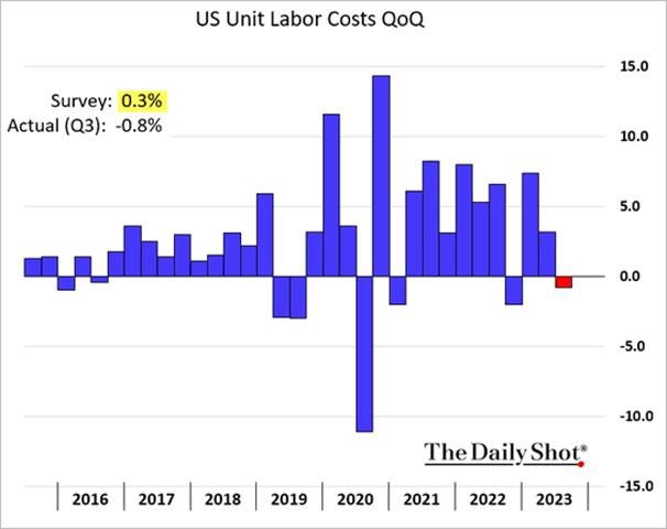 *As a result, and music to the Fed’s ears, unit labor costs fell for all the right reasons in Q3