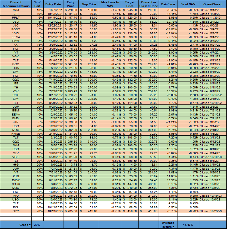 *The mock portfolio has given up recent gains in its FX positions due to a stronger dollar this week, while our long long-dated Treasury position is higher