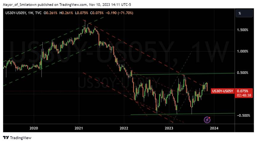 5yr-30yr Treasury Spread: The curve is flatter on the week.