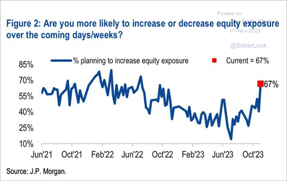 We continue to have a low level of conviction in our market outlook. Our high level of uncertainty over the path of the economy and inflation makes us neither overly optimistic nor negative on risk sentiment. Hence, we expect a choppy rangebound environment until there is clear evidence that the demand-pull forces on inflation have subsided meaningfully enough to allow the Fed to change its tune and begin to tease markets with “talks of talks” of rate cuts. This still requires a below-trend period of growth, something we believe is starting now, as higher frequency data increasingly picked up a slowing in consumer activity in October. However, this slowing in spending data and increasing weakness in both business and consumer sentiment readings come alongside a still historically strong labor market and a potential further firming in inflation readings next week. This has left Fed officials having a tough time communicating their policy outlook, balancing the uncertain effects of tighter financial and credit conditions with worries that policy is still not restrictive enough given the economy's strength. As a result, we see Treasuries more rangebound and biased towards a flatter curve. This will cap how far risk assets can rally, given a cooling growth backdrop likely means gains in stocks will come from multiple expansion versus actual earnings growth. In summary, our expected lack of progress on inflation over the next few months will counter any weakening in economic activity, keeping the Fed in a “higher for longer” stance well into Q1 before the totality of the data can finally give markets greater clarity on how long policy will be held in restrictive territory.