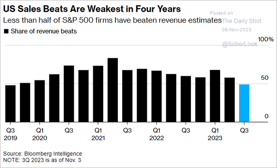 Strained Ties: China’s premier, Li Qiang, pledged that his nation would expand access to markets and also boost imports, which have fallen this year. China’s No. 2 official also vowed “to protect the rights and interests of foreign investors in accordance with the law.” That comment came after a measure of foreign investment into the world’s second-largest economy turned negative for the first time since records began in 1998. The promise to boost imports from other nations comes despite the slowdown in the Chinese economy, which has hurt demand for goods from around the world. China earlier reported that imports decreased 6.2% in September, down for the seventh month in a row. - China’s Li Vows to Boost Imports, Expand Market Access – Bloomberg