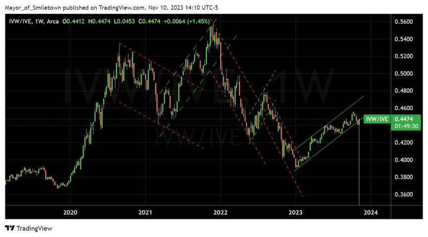 Growth/Value Ratio: Growth is higher on the day and the week, with Large-cap Growth the best-performing size/factor on the week.