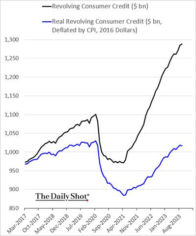 *Real revolving credit, or credit card balances, is still below pre-pandemic levels