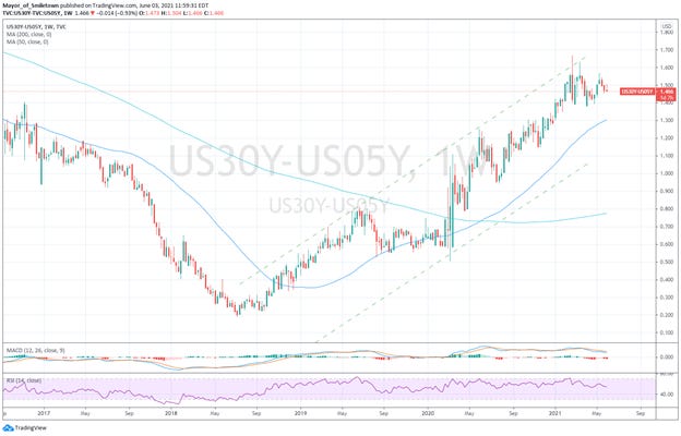 5yr-30yr Treasury Spread: Curve is Flatter on the Week