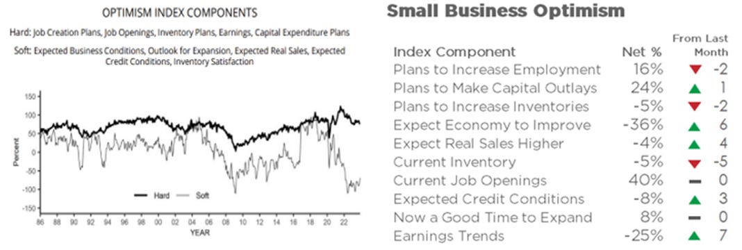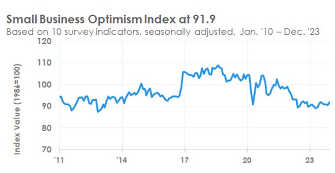 *The headling NFIB Small Business Optimism Index continues to be rangebound, in a pre-pandemic Democrat Administration historical range