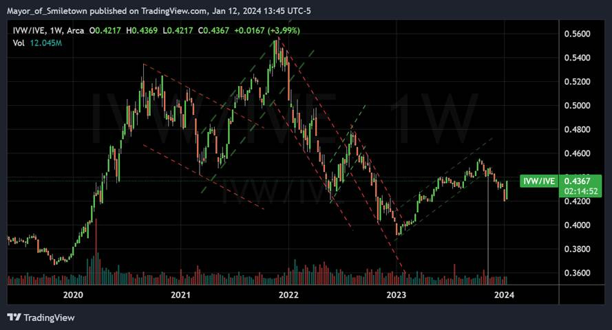 Growth/Value Ratio: Growth is higher on the week, with Large-Cap Growth the best-performing size/factor on the week.