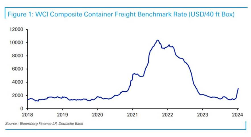*Although nowhere near where it was, shipping costs are rising due to geopolitical tensions. However, supply delivery times show no impairment to supply chains yet