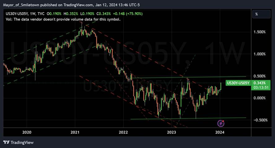 5yr-30yr Treasury Spread: The curve is notably steeper on the week.