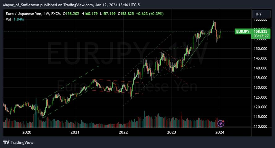 EUR/JPY FX Cross: The Euro is stronger on the week.