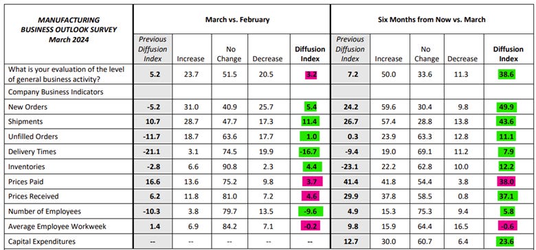 *Current general activity readings fell despite broad improvements at the sub-index level, while future general activity jumped notably