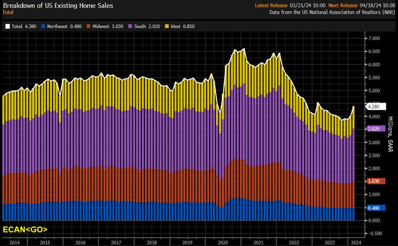 Key Takeaways: February was the biggest upside surprise since July 2020 and the second biggest in over two decades. With rates now elevated for a while, homeowners may become increasingly impatient and begin to get on with life event-driven selling. "Additional housing supply is helping to satisfy market demand," said NAR Chief Economist Lawrence Yun. "Housing demand has been on a steady rise due to population and job growth, though the actual timing of purchases will be determined by prevailing mortgage rates and wider inventory choices."