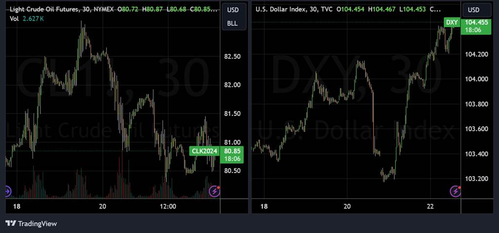 Oil was relatively unchanged this week, with traders reaccessing the bullish exuberance last week. The increased likelihood of a peace deal in Gaza and the U.S. urging Ukraine to refrain from further attacks on Russian energy infrastructure reduced the geopolitical risk premium. Copper also fell on the week, as the picture out of China, whose central bank was one of the few not to change its tune, became more bearish while momentum was stretched. However, iron ore prices rebounded slightly, countering any more risk-off messaging copper indicated. The agg index was higher during the week, although grains, corn, and beans only changed slightly. Finally, despite the more dovish messaging from the Fed, the dollar was stronger on the week, with the $DXY close to 104.5. More dovish messaging from other central banks led to weakness in major crosses.