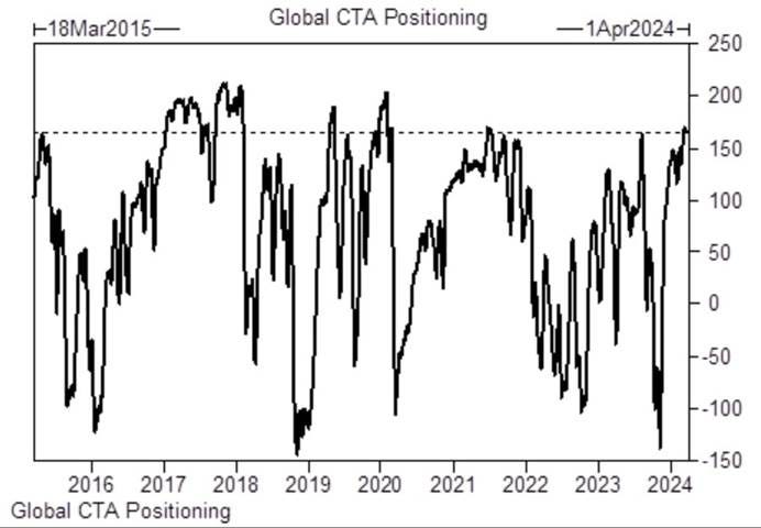 CTAs are long $165 billion of global equities, the most long they’ve been in 3 years