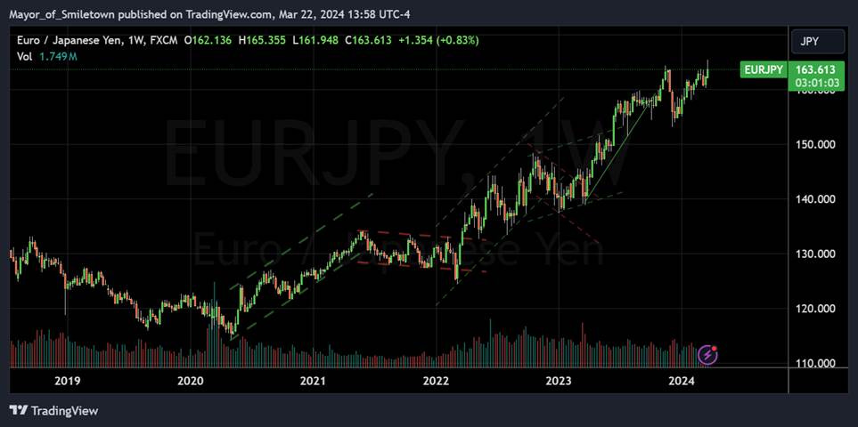 EUR/JPY FX Cross: The Euro is stronger on the week.