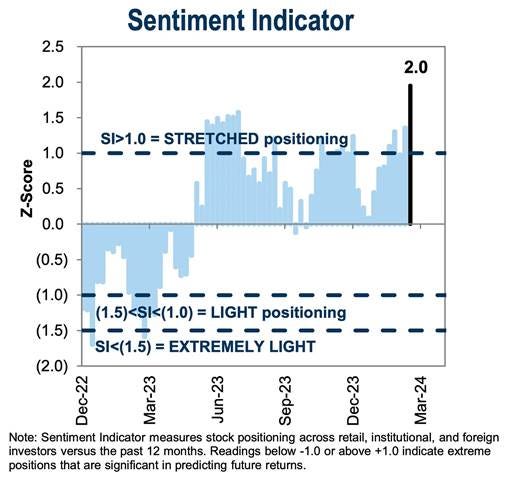 The S&P is ending a positive week on a more somber note after a post-Fed rally is losing some steam. Momentum and growth factors drove gains at the factor level, while communication, industrials, and discretionaries sectors outperformed. Homebuilders and semiconductors also performed well on the week. The main event of the week was the Fed’s ability to deliver a dovish message out of their March FOMC meeting despite upgrading their growth and, to a lesser degree, inflation outlook. Treasuries were higher on the week but, again, were not without volatility, especially in the long end, with the curve ending the week marginally steeper. The economic data calendar was on the lighter side, with S&P PMIs showing manufacturing activity reaccelerating while the service sector expanded at a reduced rate. Housing data was better than expected, with higher existing home sales showing some movement by previously low mortgage locked-in sellers. Of course, inventories still remain historically tight, keeping starts and homebuilder sentiment high. The Philly Fed Manufacturing Index was broadly unchanged, although there were broad improvements at the sub-index level. Outside the U.S., there were plenty of central bank moves, with policymakers generally signaling they expect the inflation slowdown to resume and maintaining their lower-rate outlook. The world’s nearly 12-year experiment with negative interest rates is over now that the last holdout, the Bank of Japan, moved its key policy rate back to at least zero. Two of the Bank of England’s most ardent hawks withdrew their support for interest rate hikes as the UK’s central bank voted for a fifth-straight meeting to keep policy unchanged at 5.25%. The Swiss National Bank became the first among global advanced market peers to cut interest rates, while Norway signaled no such move until the end of the year. The Reserve Bank of Australia said it still can’t rule out the possibility that interest rates will need to be raised further, adding that inflation remains too high and is expected to remain elevated for some time yet. There were also numerous EM policy actions. It was a busy week, to say the least.