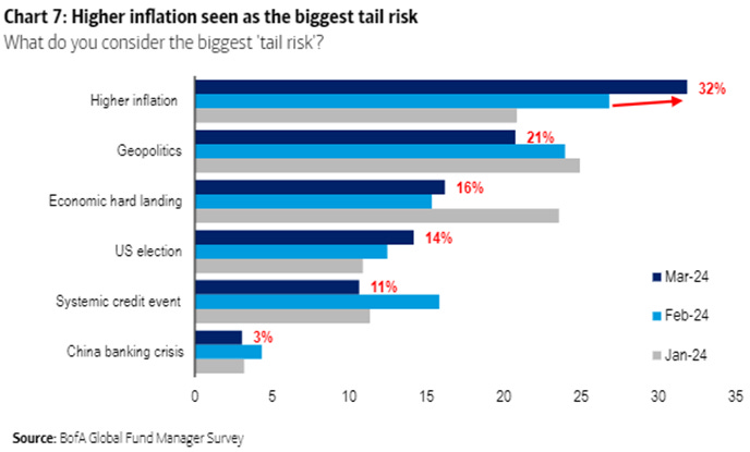 “In January, fund managers were worried about geopolitics and the possibility of an economic hard landing, a natural environment to expect rates and inflation to come down. Now, their biggest concern, by far, is higher inflation. That psychology in itself may make it harder for the Fed to cut aggressively.” - @johnauthers