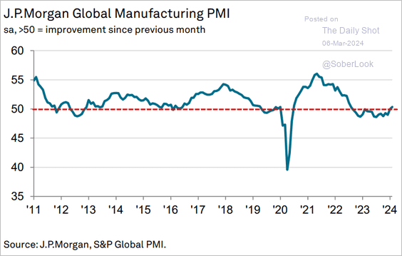 *Global manufacturing PMIs have been rising, but we question the sustainability of this