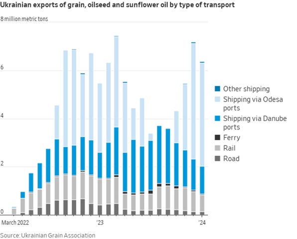 “Grain exports more than doubled to more than 5 million metric tons in December compared with around 2 million tons in September. That’s a boost for global grain markets that have been rattled since Russia’s invasion of Ukraine, one of the world’s top five grain exporters.Ukraine has also worked with international insurers to help grain ships find affordable coverage.The program was expanded this month to all nonmilitary cargo, including steel and iron ore.” - WSJ
