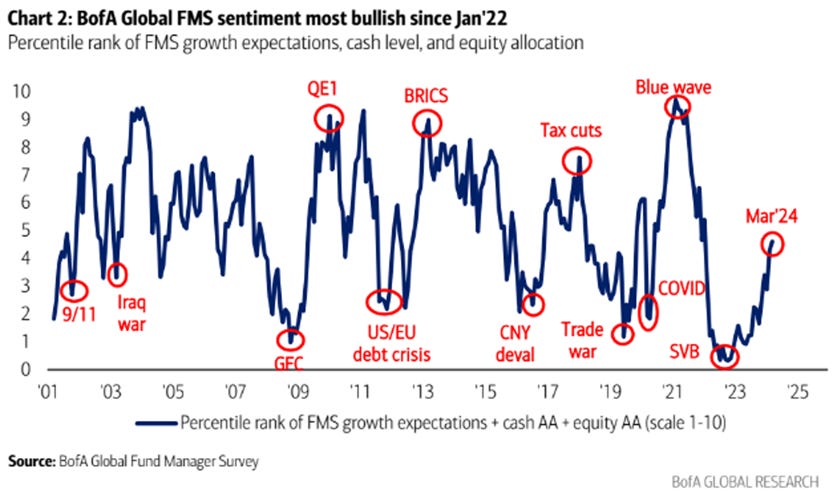 BofA’s Global Fund Manager Survey shows sentiment is most bullish since 2022.