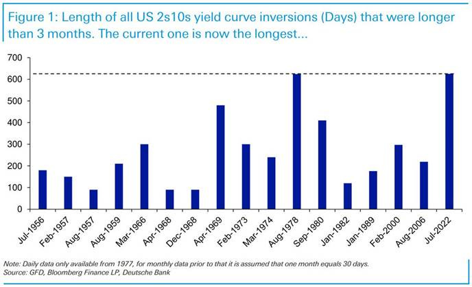 "Today is a landmark day as last night we passed the longest continuous US 2s10s inversion in history." - Deutsche Bank via @samro
