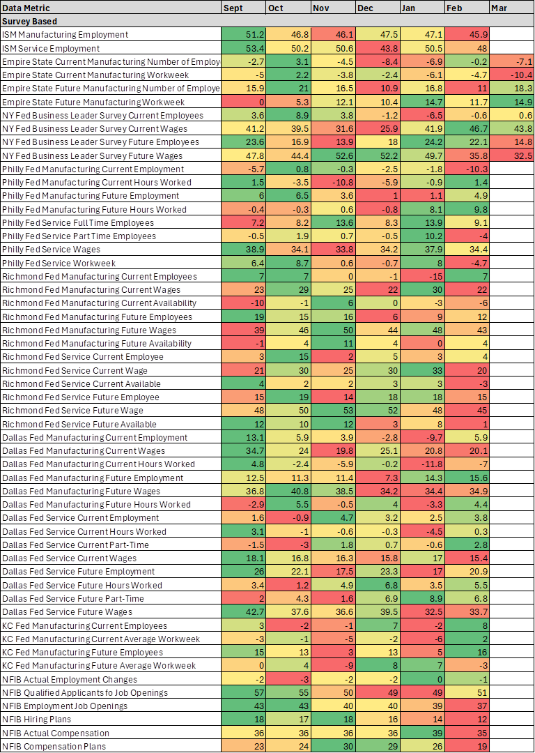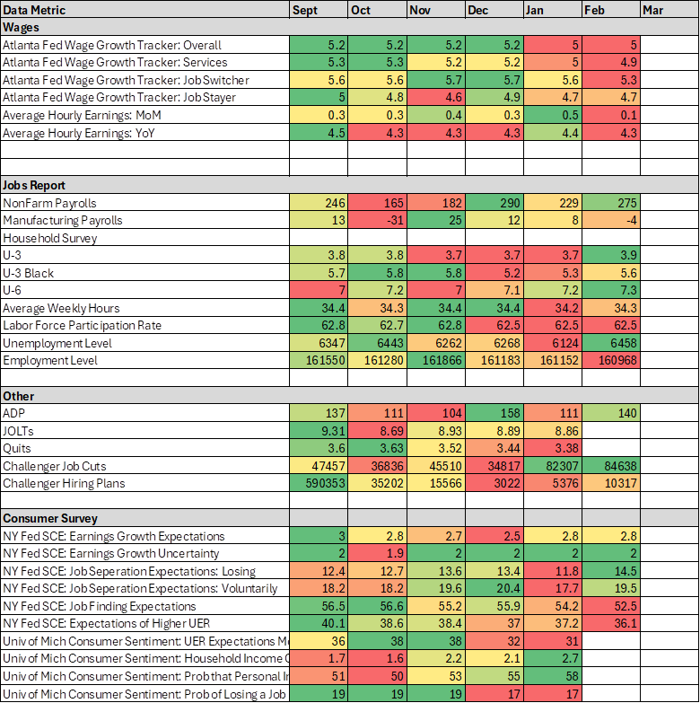 *Labor metrics elsewhere are more mixed, with wages notably lower in February, while the jobs report delivered a varied message