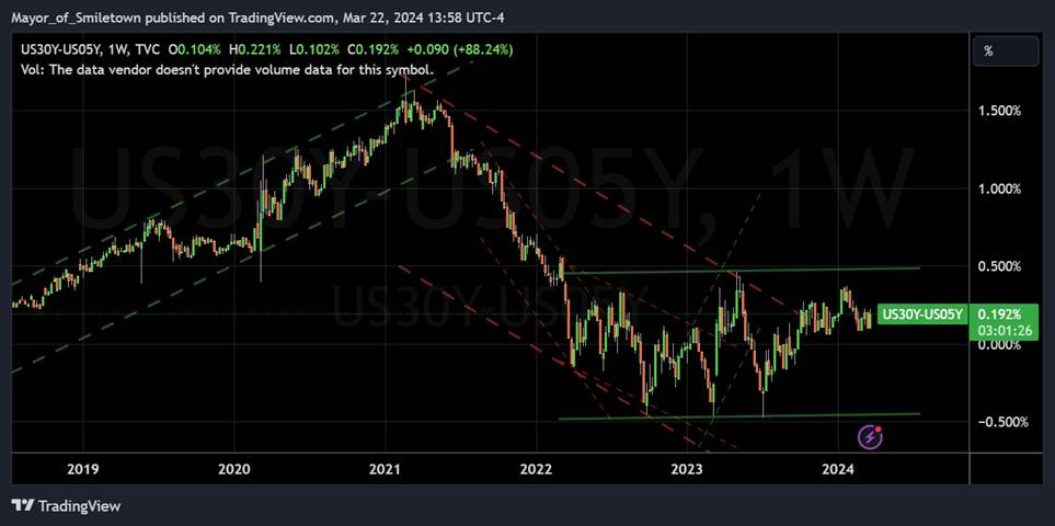 5yr-30yr Treasury Spread: The curve is steeper on the week.
