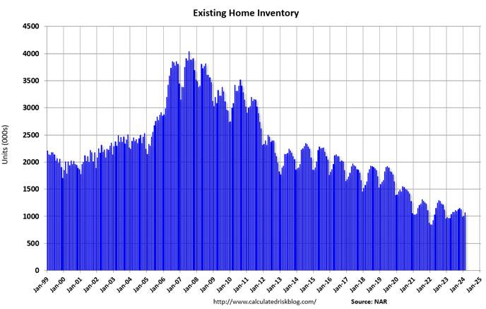 *According to the NAR, inventory increased to 1.07 million in February from 1.01 million the previous month