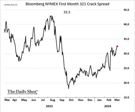 *Lower supply and inventories have driven crack spreads higher